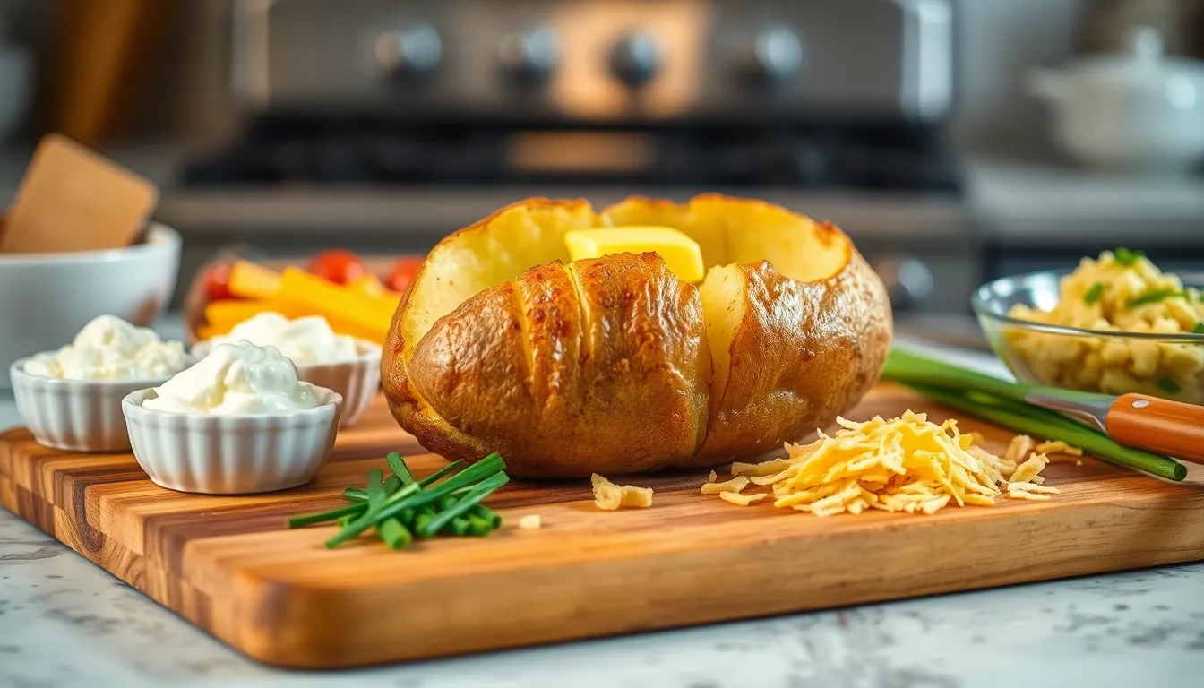 Experiment with toppings to personalize each baked potato. Classic options include butter, sour cream, cheese, or chives. Adding proteins like bacon or chili makes the meal more substantial without extra hassle.